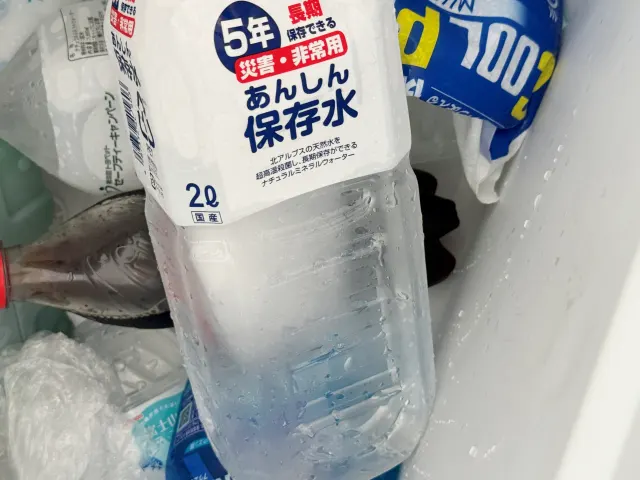保冷剤のほかに、2リットルのペットボトルを凍らせて保冷剤の代わりにしちゃいます。